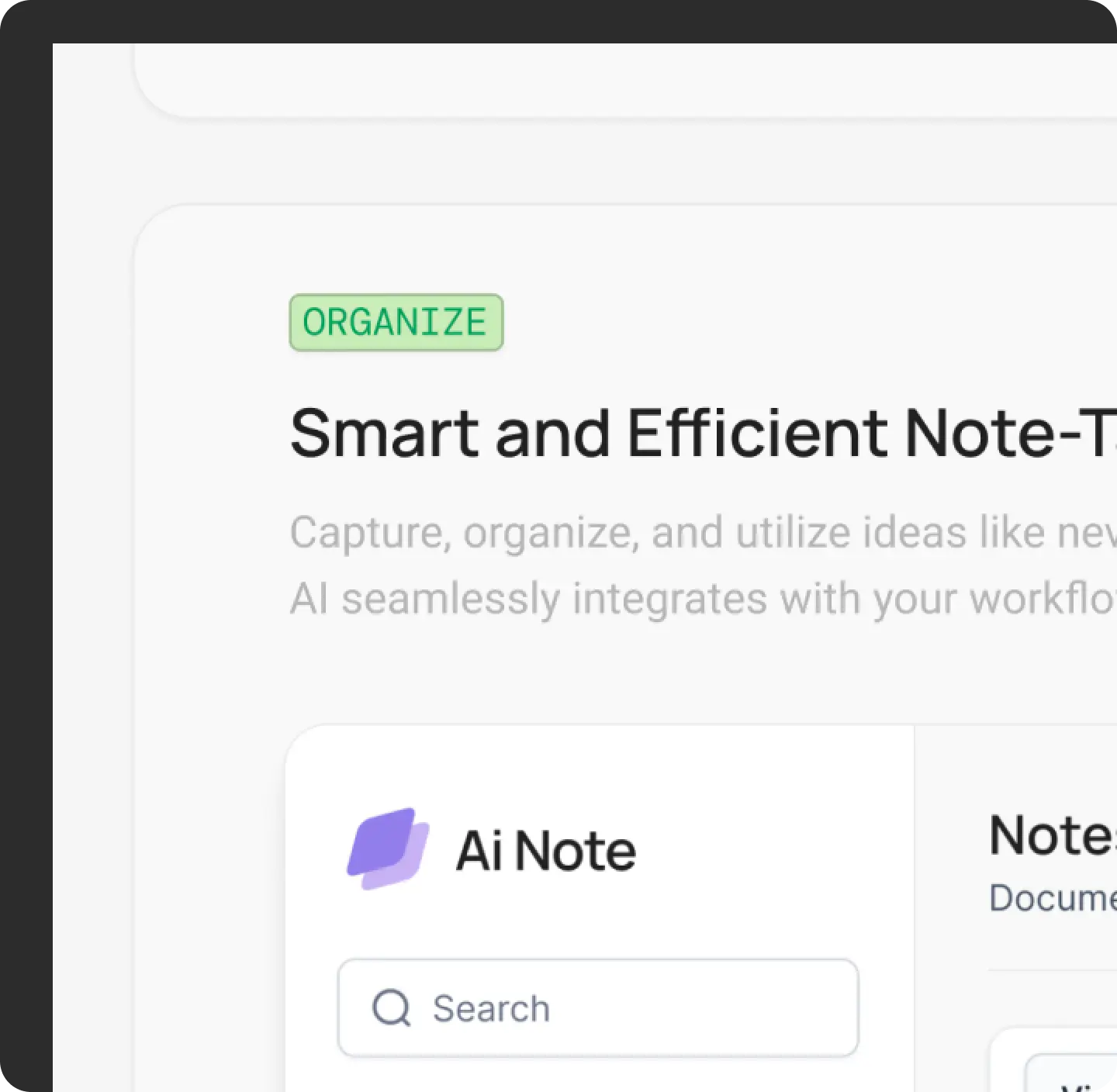 Featuring smooth animations and a structured design, AI Note leverages its minimalist aesthetic to create a professional and engaging experience for users.