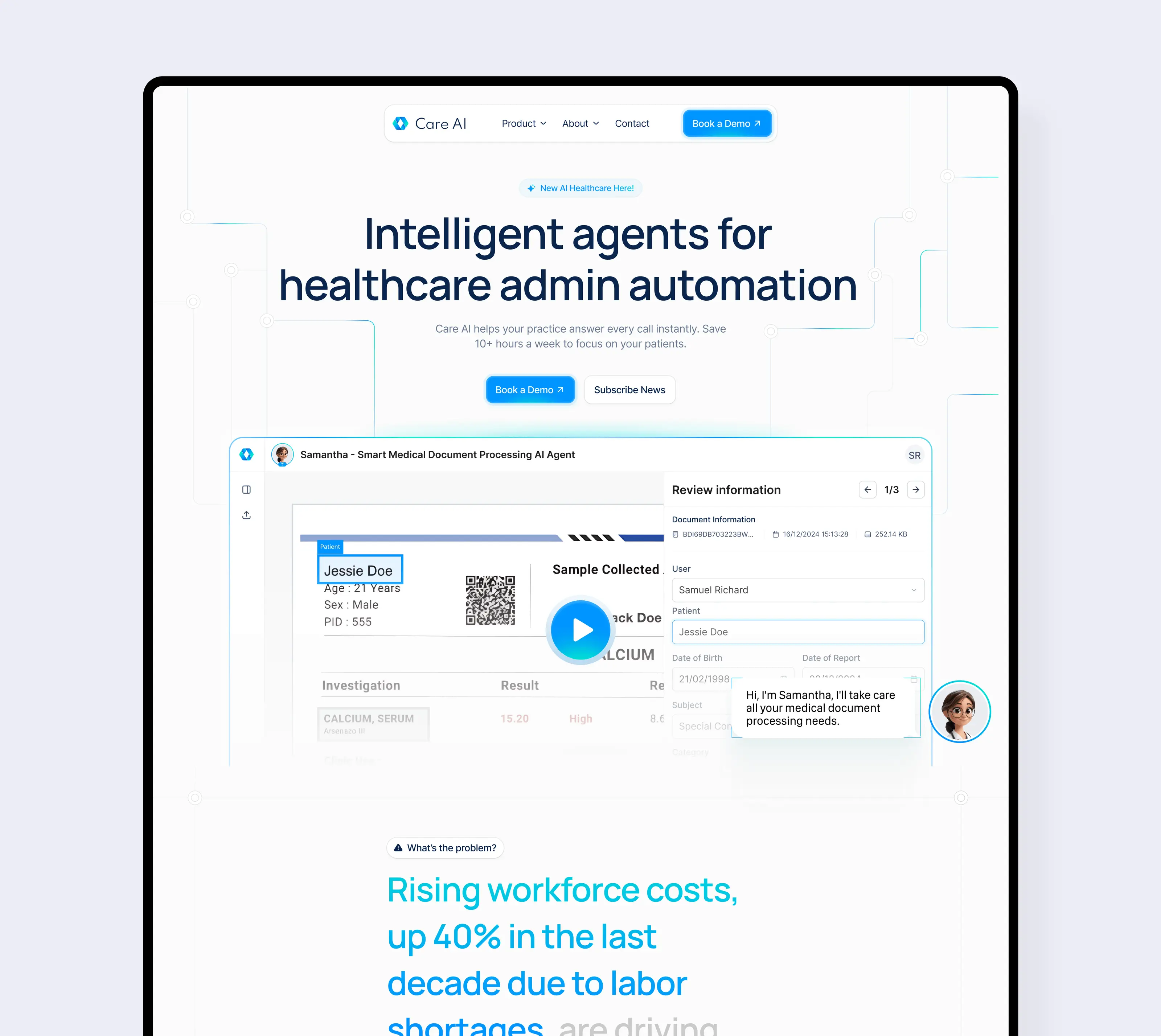 In healthcare, clarity and empathy build trust. Simplifying the visual language and introducing personality through Annie transformed Care AI’s technology into an experience that feels supportive and intuitive.